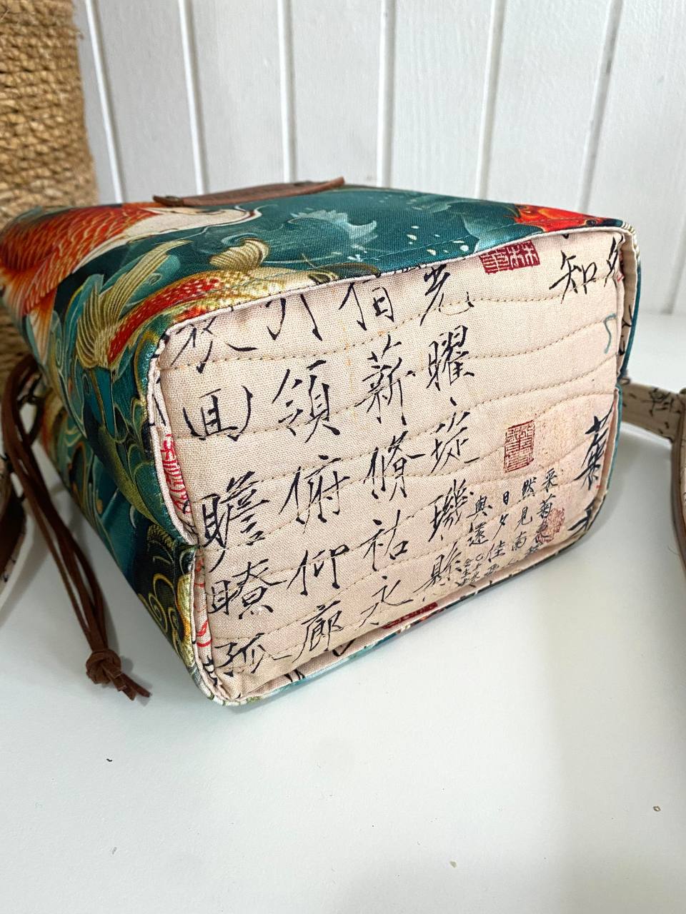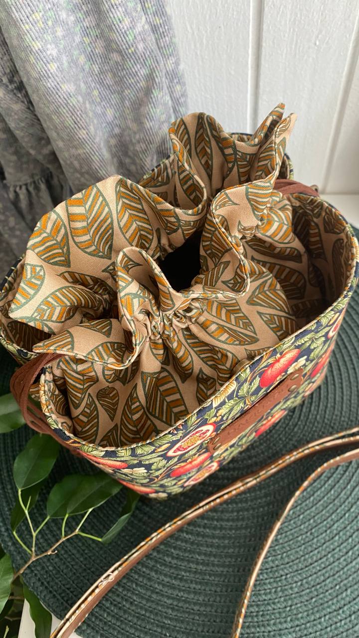Pamučna torba sa mehanizmom na zatezanje. Torba čvrsto drži svoj oblik. Ima dva spoljna džepa sa magnetnim kopčanjem i podesivi kaiš.
